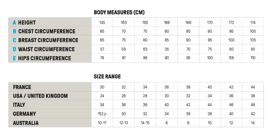 Aquí encontrarás las tablas de tallaje para las mallas